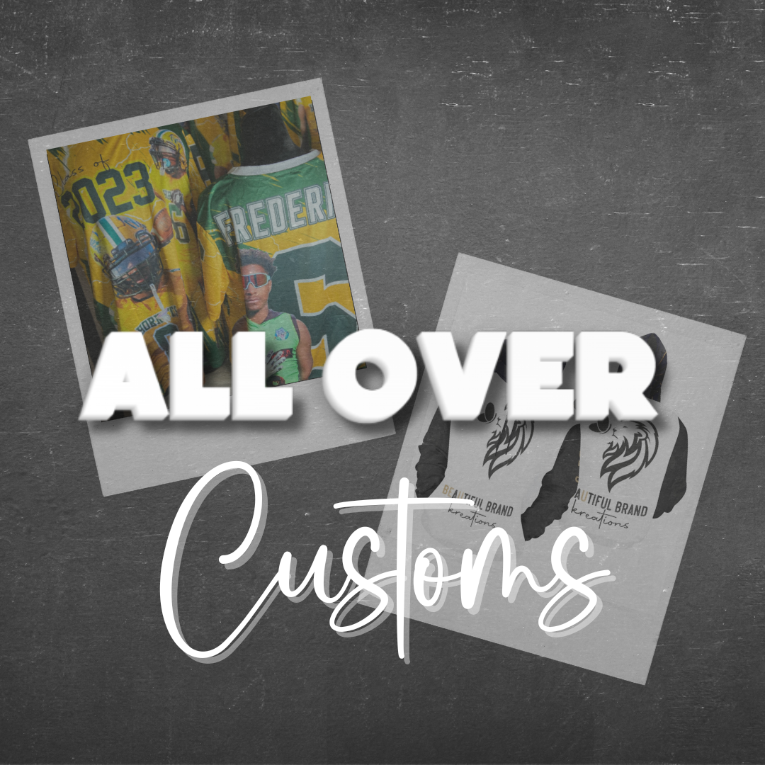 Standing out has never been easier! Our all over customs allow you to create apparel, home decor, travel accessories and more that allow you to be your authentic self! Express yourself today without saying a word! Shop our custom all over creations today.