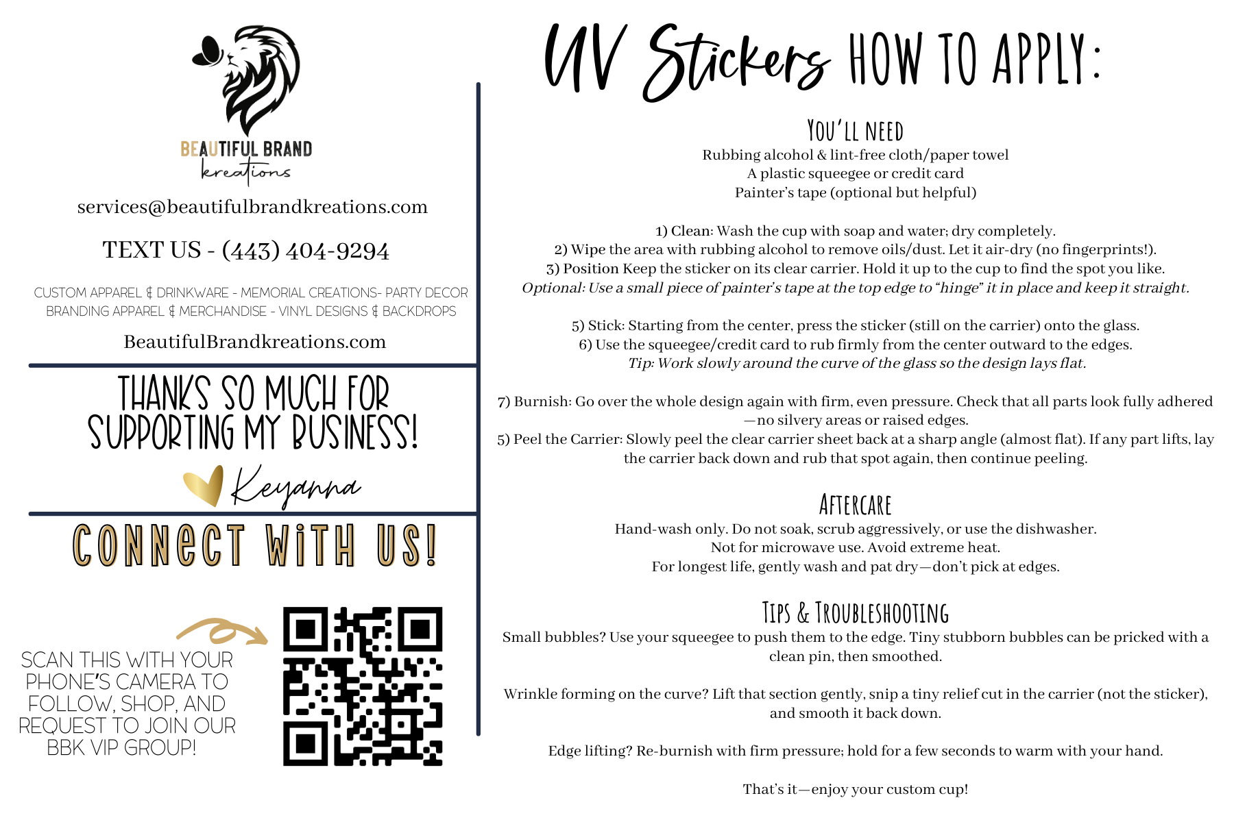 UV STICKER | Beautiful Brand Kreations ™